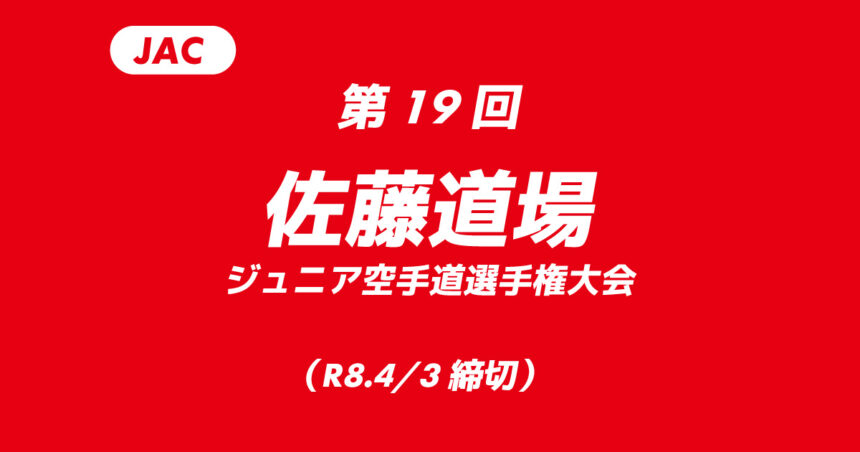 | 【詳細ページ】 | 第19回佐藤道場ジュニア空手道選手権大会のご案内 – カラテ東海チャンピオンズ決勝大会 |